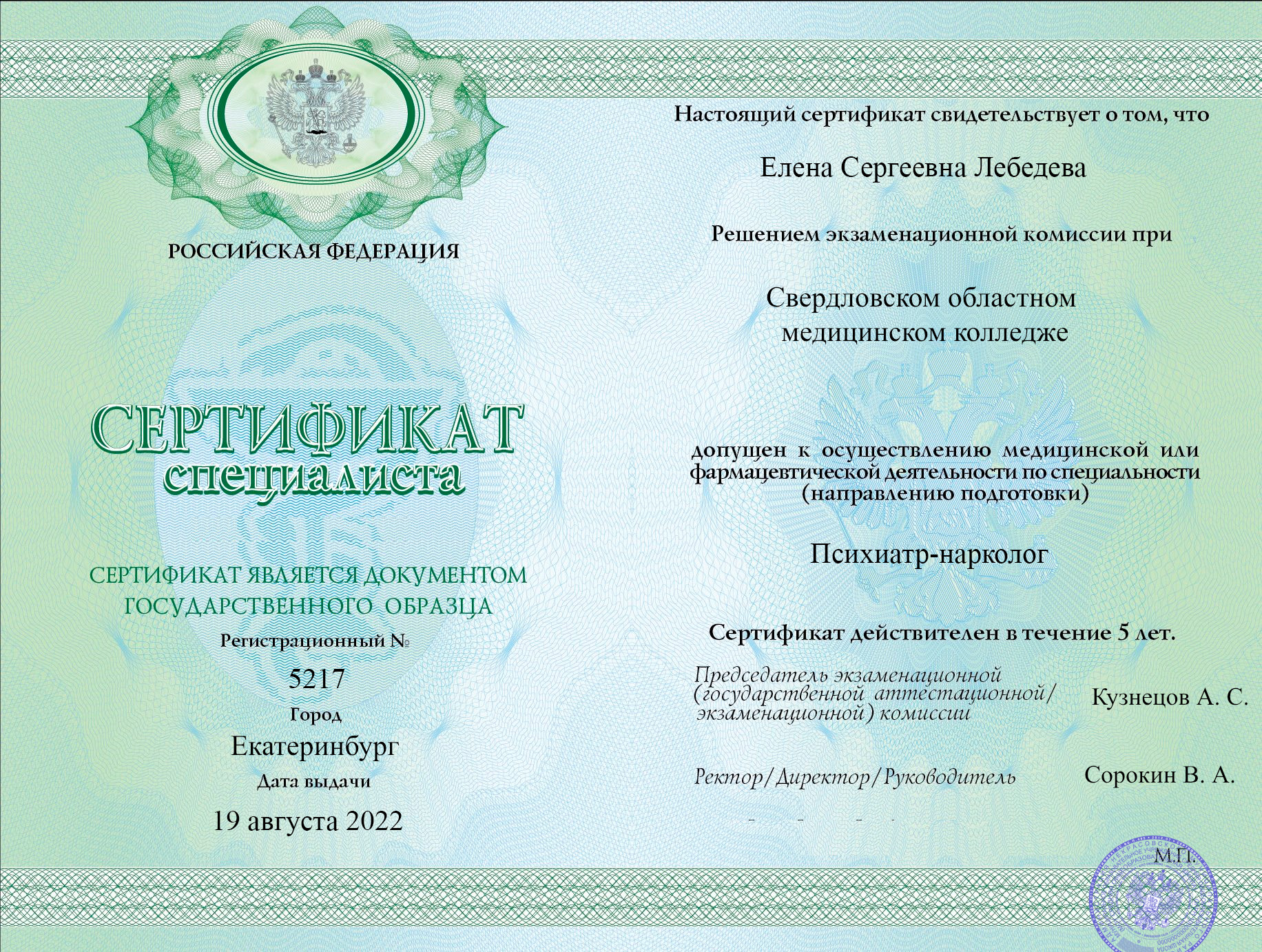 Елена Сергеевна Лебедева врач нарколог клиники доктора Стукаловой в Катав-Ивановске